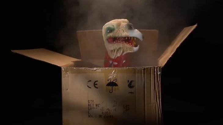 Нам показали какую то куклу в коробке, которая смеялась голосом Брэя Уайатта. Вроде... что это??