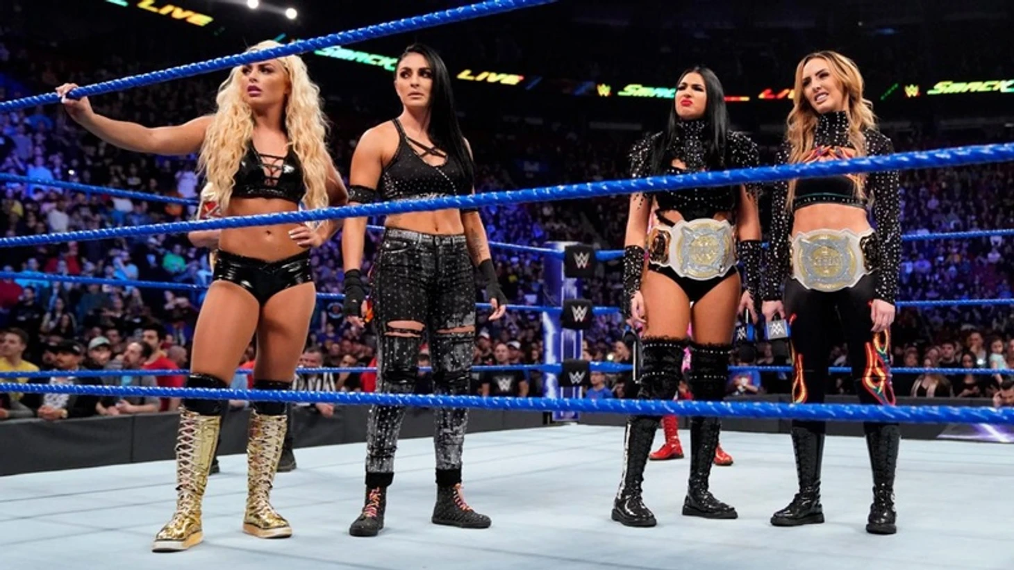 Победительницы матча – Эмбер Мун, Бэйли, Аска и Каири Сейн;