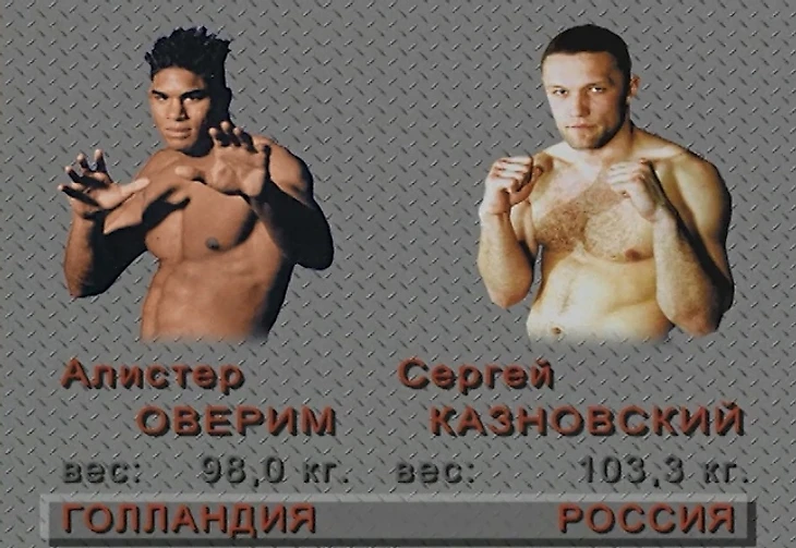 Соперником 22-летнего мощного голландца стал 25-летний боксер Сергей Казновский, у которого было четыре победы и столько же поражений в ММА. Оверим в те годы любил подчеркивать свое прозвище «Крушитель» и вышел в клетку с огромной кувалдой.