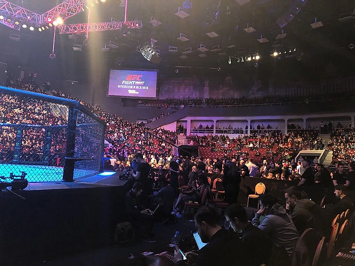 Проход на стадион ничем не отличался от стандартного. Но в «Юбилейном» было как-то по-домашнему, в отличие от «Олимпийского». То ли команда UFC Russia четче стала понимать свои задачи, то ли американский офис подсказал после дебюта организации в России, то ли просто арена в Питере удобнее внутренней логистикой – но все пути были понятны.