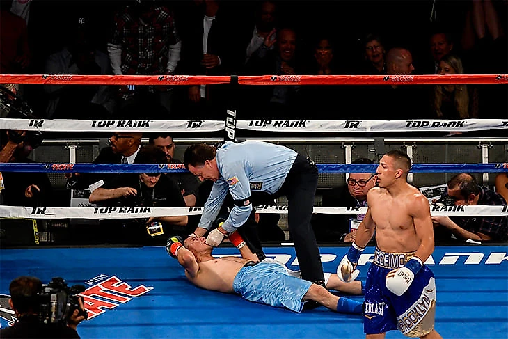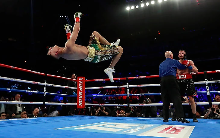 За два с половиной года в профи Лопес выиграл все 13 боев – 11 раз Теофимо победил нокаутом. Он умеет вырубать наглухо – ценное качество для легкого веса. А потом эффектно празднует победы: прыжком Роналду, танцами и сальто. Иногда Тео перебарщивает: после победы над Диего Магдалено Лопес имитировал движения лопатой – закапывал соперника в могилу. Все нокауты американца можно посмотреть здесь.