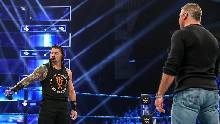 Бывший член Щита выходит на ринг и берет в руки микрофон. Однако недолго думая Роман выбрасывает его. Шейн делает аналогичное действие. Рейнс уже готов к схватке, но сзади его отвлекает выбежавший на ринг Элайас. МакМэн пользуется этим, и атакует Романа со спины. Через несколько секунд Роман находит в себе силы отбиться, но на ринг взбирается бродяга, а поэтому численное преимущество не на стороне Рейнса. Шейн и Элайас избивают Романа, а гитарист добивает его своим Дрифт Эуэй.