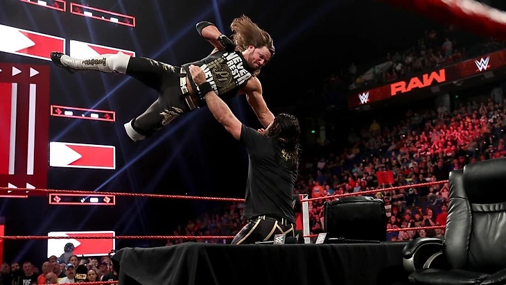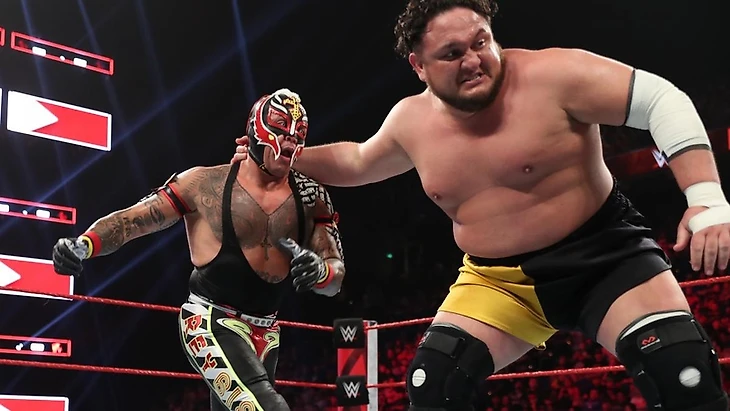 Перед боем чемпион взял в руки микрофон, обратившись к Рею, и сказал, что сын Мистерио стыдится своего отца, так что, если лучадор является хорошим отцом, то даст Доминику одну из своих масок, чтобы тот мог скрыть свой стыд от людей на улицах. Что же до Мистерио, то его и маска сегодня не спасет. Ибо Рей стал оружием в руках ЭйДжей Стайлза на прошлой неделе, из-за чего Джо не сумел стать претендентом на Вселенское чемпионство. За это он сегодня уничтожит своего оппонента. Что же до матча, то сразу же Джо набросился на оппонента, но тот попытался дать отпор. От суисайд дайва Рей сбежал в ринг, проведя сопернику дропкик и добавив seated senton. Попытка бейсбол слайда, но Джо выставил колени, и шоу ушло на рекламу. Когда мы вернулись, увидели, как Джо поймал визави снэп пауэрслэмом, но удержание только до 2. Долгий захват, от которого Мистерио отбился, а потом ушел и от сентона, проведя свой собственный сентон с канатов, а затем попытку слэма перевел в DDT, но удержание лишь до 2. Направив Джо харриканраной в верхний тернбакл, Рей провел 619 в живот, после чего провел еще одну харриканрану, чтобы провести уже классический 619, который Самоа попытался перевести в Клатч, но Мистерио отбился, только чтобы попасть на уранаги в углу. Выход на еще один уранаги, но Рей ответил сворачиванием до 3. Неожиданная победа, которую легендарный лучадор отметил на стэйдже с сыном.