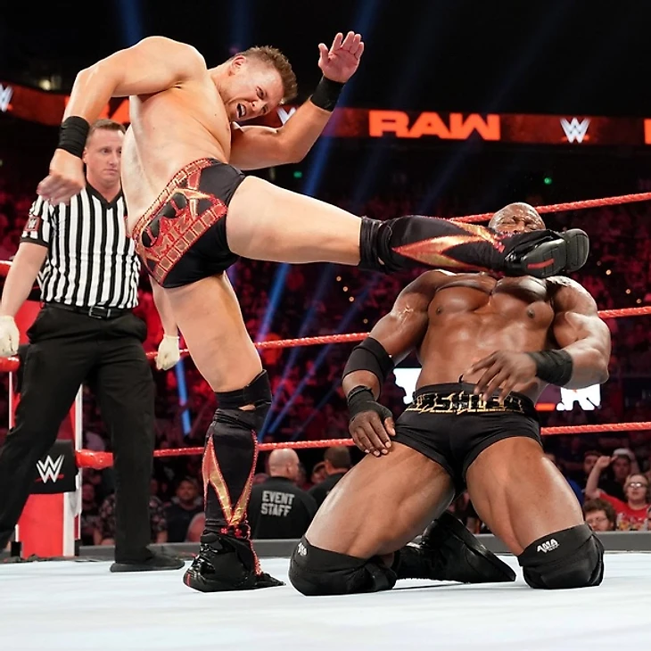 Томить нас сильно не стали, и шоу открыла Алекса Блисс, которую встретили вполне тепло. Поприветствовать нас на своем шоу, Алекса напомнила о том, что через 3 недели пройдет Money In The Bank, что на нем состоится 2 матча за кейсы, и в каждом из поединок примут участие по 4 представителя каждого бренда. И сразу же Блисс принялась представлять нам участников, а первым человеком с RAW, который поборется за мужской чемоданчик стал Брон Строумэн. Компанию «монстру» в бою составят Рикошет, Дрю МакИнтайр и Бэрон Корбин (последних двоих встретили вполне негативно, особенно Корбина). Бэрон вышел с микрофоном, простивший Блисс за то, что она не стала перечислять все его достижения во время представления, и пообещал нам, что в скором будущем он станет 2-кратным обладателем чемодана Money In The Bank. «Ты имеешь ввиду, 2-кратного лузера?» — спросил Рикошет, напомнив о том, что прошлый свой чемодан Корбин прошляпил. «Волчара» попытался как-то ответить Рикошету, но его прервал МакИнтайр, напомнивший о том, что неделю назад Бэрон украл у него победу. Корбин попытался ответить, но Дрю не позволил ему эту сделать, продолжив свою речь и заведя уже классическую речь о том, что он устал от того, что каждый раз кто-то крадет его шанс «выстрелить». Рикошет попытался прервать эту милую беседу, на что шотландец ему ответил, что он может сколько угодно проводить свои хай-флай атаки в ринге, но сейчас лучше заткнуться и дать старшим закончить свой бизнес-разговор, иначе Рикошет ведь и получить может. Бэрон же, увидев как быстро МакИнтайр переключил свой гнев на другого человека, заявил, что пока в матче Дрю будет вот так разбираться с Рикошетом, сам Корбин спокойно заберется по лестнице и снимет чемодан, на что Дрю предложил «волку» заткнуться, а то он его прибьет. В конце концов, их заткнул безмолвный до этого момента Брон, который заявил, что они могут сколько угодно ссориться, но когда дело дойдет до матча, ни Корбин, ни МакИнтайр не смогут остановить «монстра в банке» это словосочетание на русском звучит, как название консервов из Чернобыля. А сегодня он предложил устроить небольшое превью грядущего матча: командный поединок, в котором Корбин и МакИнтайр будут противостоять Строумэну и Рикошету, потому что «Corbin and McIntyre, you're gonna GET THESE HANDS right now!».
