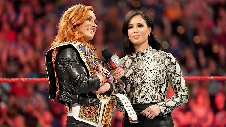 У Бекки взяла интервью Чарли Карузо, и первый вопрос был о том, почему Линч решила защищать оба титула на Money In The Bank против Лэйси Эванс и Шарлотт Флэр соответственно. Фанаты завели чант «Becky two belts!», а чемпионка ответила, у нее был выбор: либо защищать то, что у нее есть всеми возможными способами, либо за то, что у ее есть. И единственное, что хорошо ей известно — как драться. Дальше речь зашла о том, что на WrestleMania ставки были не в пользу Бекки, и она ответила, что не стояла бы здесь, если бы думала о том, в чью пользу ставки. И на WrestleMania 35 она победила непобежденную до этого Ронду и Шарлотт Флэр. Те, кто следят за карьерой Линч, знают, что она не добилась бы ничего, если бы думала о том, что у соперниц есть преимущества над ней. И она сотворила историю не за счет того, что она избегала кого-то, а за счет того, что она победила всех. Затем Бекки прошлась и по соперницам, заявив, что Шарлотт Флэр все еще имеет свою родословную и чемпионский ДНК, однако Линч все еще знает, как с ней справляться. Лэйси Эванс же хорошая спортсменка с отличным ударом справа, но она не подумала, что она сейчас решила наносить удары человеку, которому нравится. Так что она на всякий случай решила напомнить, когда и где Эванс получит — на PPV Money In The Bank. Затем Чарли решила напомнить нам о том, что Эванс сделала с Бекки неделю назад, спросив, неужели это был прогноз того, что случится на MitB. Линч заявила, что это был не прогноз, а напоминание, после чего забрала микрофон у Карузо, и вызвала Эванс к рингу, если та не слишком занята за кулисами, чтобы получить сдачи за то, что произошло неделю назад. Эванс не замедлила появиться, а ирландка тем временем сняла пояса и куртку, приготовившись к разборкам. Лэйси же отметила, что Бекки, как настоящий мужик, хочет получить все и сразу. Но, в отличие от Линч, над которой взял верх ее темперамент, Эванс не очень жаждет терять самообладание, но на прошлой неделе она уже предупреждала чемпионку о том, что не стоит поддаваться эмоциям, и Бекки не прислушалась, так с разговорами покончено. После этих слов претендентка набросилась на чемпионку, та, в свою очередь, дала отпор, пока не прибежали судьи для того, чтобы разнять их… правда, ненадолго, и дамы опять сцепились, а потом их снова разняли, чтобы они снова сцепились, и снова их разняли, на этот раз уже на совсем, а нет, они снова принялись драться, но все-таки сумели их растащить, и Эванс увели за кулисы.