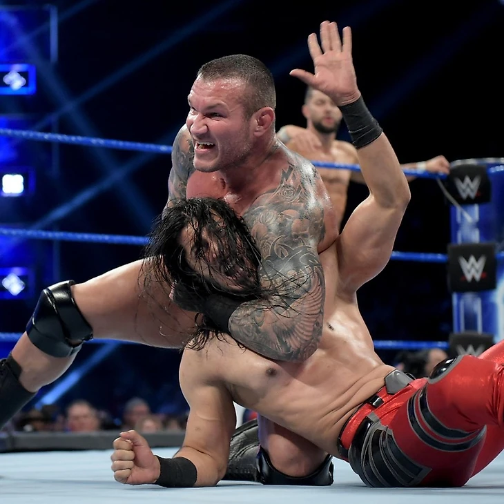 Матч начинают Али и Рэнди Ортон. Гадюка сразу прижимает легковеса в своем углу, Али оттолкнул Рэнди, но самого Али за волосы обратно в корнер потащил Андраде. Али выкрутился с помощью хай кика, Ортону достался кик, но Верховный Хищник довольно быстро перехватил прыжок Али и оттолкнул его за ринг.