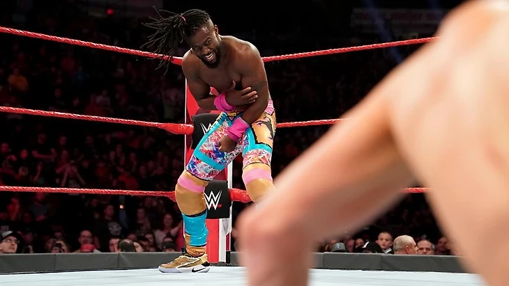 Кофи, видимо, все-таки не чемпион в глазах руководства. Иначе как объяснить то, что он выходит к рингу раньше претендента? Начался бой с агрессивного чейн-рестлинга, и тут же Брайан стал проводить дропкики в углу. 2 прошла, а заход на третий Кофи встретил клоузлайном, после чего отправил еще одним клоузлайном соперника за пределы ринга и провел отличный дайв. С рекламы мы вернулись, чтобы увидеть, как Дэниел уничтожает Кофи в углу, но тот отбился и провел отличный бэк элбоу, правда только до 2. Кик в грудь и сплэш от Кингстона, но и этого было недостаточно, чтобы победить. Манки флип у Брайана прошел, однако Кофи приземлился на ноги, но уже в следующем эпизоде претендент перекинул чемпиона за пределы ринга через рингпост, после чего «познакомил» его с 2 стойками ринга. В ринге же Брайан сосредоточил свои атаки на левой руке Кингстона, несмотря на активные чемпионские попытки отбиться. Butterfly слэм перешел в харриканрану, а затем претендент и вовсе попытался выйти на Rebel Lock, но Кофи отбился, рестлеры разбежались, и столкнулись посреди ринга в двойном кроссбади. С рекламы мы вернулись, чтобы увидеть, как Брайан выкинул оппонента за пределы ринга, и тот жестко приземлился, а после Кофи был впечатан еще и в ограждение. Попытался Дэниел направить недруга в ступеньки, но тот заскочил на них, потом заскочил на угол ринга, и еще один дайв от чемпиона WWE. В ринге Кофи еще и фрогсплэш на спину провел, лишь до 2 удержание. В следующем эпизоде Брайан поймал Кофи на Rebel Lock, Кинстон попробовал ответить сворачиванием, и дотянулся до канатов. Дэниел же пустил в ход коронные кики, но чемпион все стерпел и сам принялся забивать соперника. От бэк суплекса Кофи ушел, провел коронный клоузлайн и boom drop. Попытка Trouble in Paradise была встречена коленями, а Дэниел еще и немецкий суплекс добавил с удержанием, правда и его для победы не хватило. Колени не прошли, после чего Брайан долго пытался затащить визави в Rebel Lock, однако Кофи выдержал и поймал момент для Trouble in Paradise, который принес ему победу.