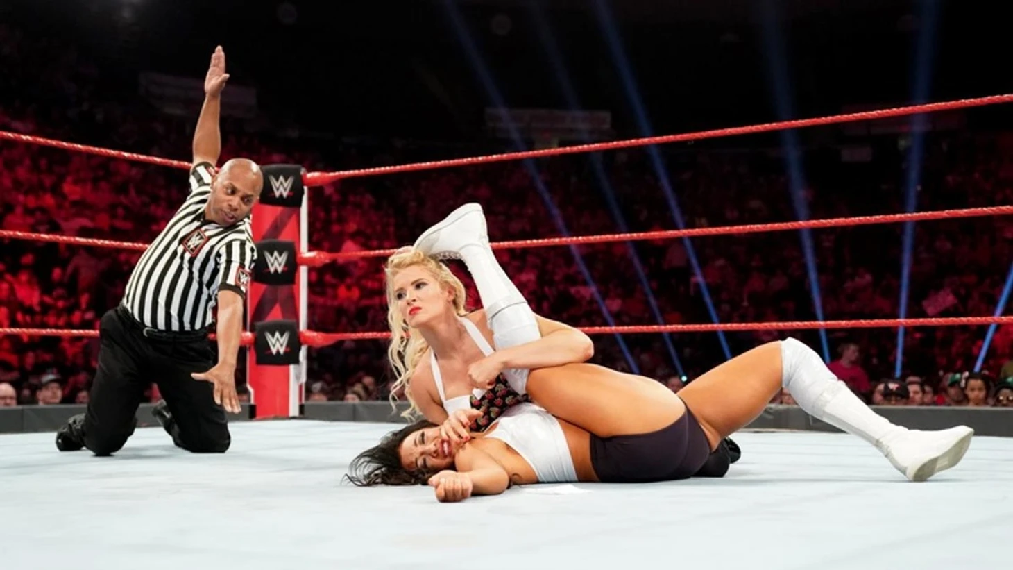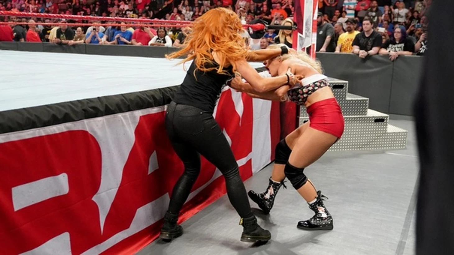 Наоми, Дэйна Брук, Наталья и Алекса Блисс наблюдали за боем с рампы. Хотя наблюдать там было особо не за чем. Пара киков, брокобастер, Woman's Right, и это победа Эванс в сквоше. После этого Эванс взяла в руки микрофон и заявила, что пригласила всех их, чтобы они увидели леди на классе в действии. Также она заявила, что на MitB она отберет у Бекки все, ради чего она столько лет пахала, и если кто-то из девушек, присутствоваших на ее матче, выиграет чемоданчик Money In The Bank и решит закэшить на ней, то эта девушка сильно пожалеет, да и все шансы стать чемпионкой утратит в эту же ночь вместе с кейсом. И тут заиграла музыкальная тема Бекки Линч, которой четыре участницы Money In The Bank матча любезно уступили дорого, а она ринулась в ринг и принялась избивать Эванс. Попытка Dis-Arm-Her, и Лэйси была вынуждена бежать.