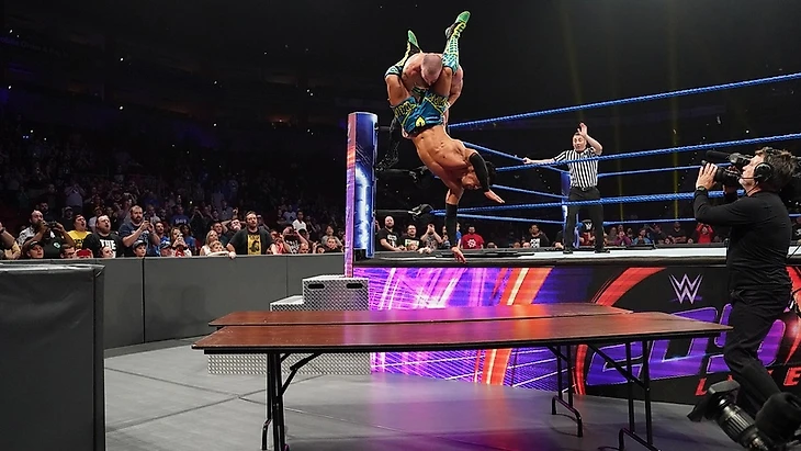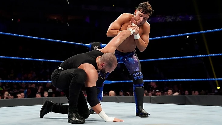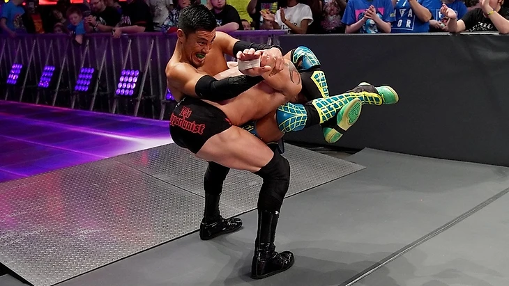 Сам бой начался с обычного силового лок-апа, в котором более перспективно показал себя именно шотландец, но разгон в матче уже совершил именно Дайвари. Итогом небольшого разбега между рестлерами стал выход Дара на бэк-слайд после своеобразной карусельки на иранце, но удержание прошло мимо. Тем не менее рестлеры в целом сумели набрать определённый темп - после ещё одной разбежки между собой, Ноам сумел выловить Арию и выбить его дропкиком в голову с ринга. Последний же снова позволил себе пойти на провокацию чемпиона 205 Live, но на этот раз не получилось - Дар отвлёк Дайвари от попытки прожечь Низа восточным взглядом злобы, однано иранец всё же сумел ответить фейсфёрстом об стол комментаторов. Начался отсчёт рефери, на счёте 4 Дар вернулся на ринг первым, а следом и Ария. Претендент на чемпионство бренда продолжил показывать доминацию на оппонентом и принялся его гонять из одного угла ринга в другой, периодически радуя всех отдельными ударами. СуперНова старался сопротивляться, но выглядело это слишком вяло, ибо Дайвари серьёзно доминировал и пресекал многие попытки на старте. Более полноценная равная борьба развернулась в одном из углов ринга, когда Дайвари хотел побыстрее расправится с Даром, но естественно началось ответное сопротивление СуперНовы. И последний сумел отбиться от двух попыток иранца перебросить себя с угла и даже попытался перейти в наступление, но хитроумный Ария подловил разгорячённого Ноама в Cobra-клатч и одновременно пытался привлечь внимание Низа к себе. Это дало эффект....Ноам разбил болевой оппонента и приготовился к атаке, однако Дайвари моментально вернул к себе шотландца и влепил ему Reverse-DDT - удержание только до 2. Дайвари вновь решил попытать удачу в провокации Низа, попутно вышвырнув с ринга Дара и....снова его вернув через краткое время (логика???), из чего чуть не попался на сворачивание от Ноама - повезло, что мимо. Дару удалось уйти от атаки Дайвари и он начал чувствовать свой момент, когда оба сошлись в углу ринга в плотной борьбе. Дальше же Ноам посредством апперкота, elbow-страйка и Northern-Light суплекса перехватил контроль в матче и оказался близок к победе - но удержание было до 2. Шотландец приготовился на новый заход, чтобы покончить с хитрым хилюгой - и последний ответил сворачиванием, неудачным. Дайвари зашёл на бут, но попал в воздух между канатами, а Ноам прибил его к рингу подсечкой. Ария разумеется не собирался так просто сдаваться и пытался врубить оппонента лариатом, однако СуперНова ушёл от атаки и взял иранца в Ankle Lock. С горем пополам, но Дайвари разбил болевой....только чтобы после краткого размена реверсами снова в него попасть. Хотя удача точно подыгрывала иранцу - ему снова удалось сбросить болевой от Ноама. А уже затем Дайвари точно не прозевал момент - он нейтрализовал СуперНову суперкиком, а следом уже добил оппонента Persian-Lion сплэшем и окончательно уничтожил после коронного Hammerlock Lariat, удержав Ноама Дара до 3.