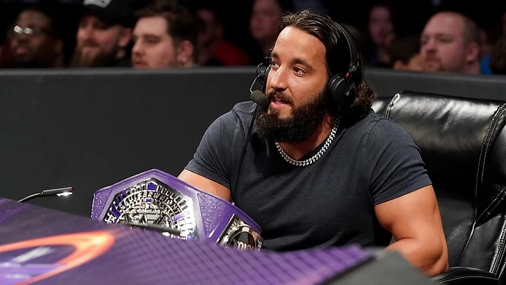 Перед началом боя, нам показали небольшой ролик с выпуска прошлой недели, где после событий мэйн-ивента между Низом и Гулаком, у чемпиона бренда пытались спросить о том, что будет дальше для Тони и его матча с Дайвари. Последний естественно прервал его и кратко дал понять, что он готов только к одному исходу....И как следствие - сам чемпион решил присоединиться к панели комментаторов, чтобы удостовериться лично в подготовке мистера Дайвари к главному матчу своей жизни.