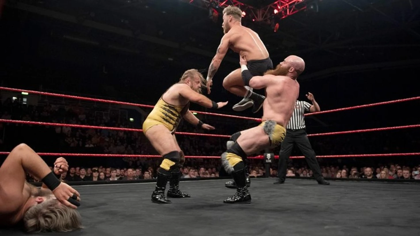 Доброго времени суток, Ассалому Алейкум, дорогие друзья! На связи Юлий Марков, и я продолжаю писать не самые популярные обзоры на NXT UK. На свежем выпуске, который записывался в Глазго, что в Шотландии, нас ждало целых 4 матча, а мэйн-ивентом стал бой за командные чемпионства. Давайте посмотрим, что из всего этого получилось.