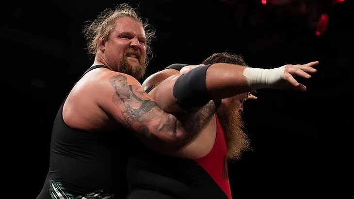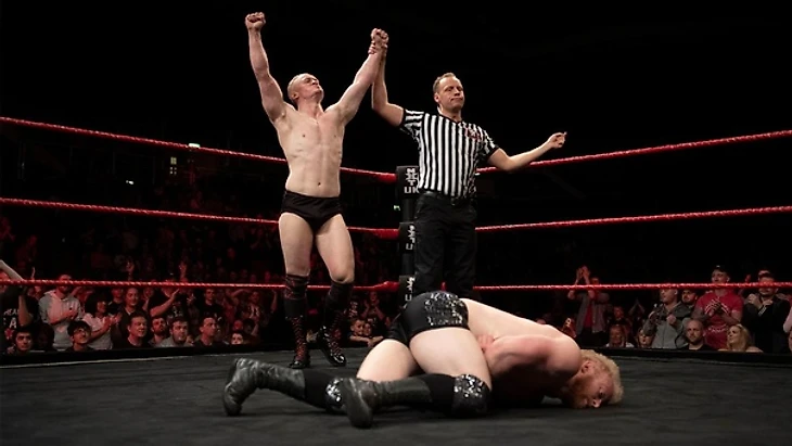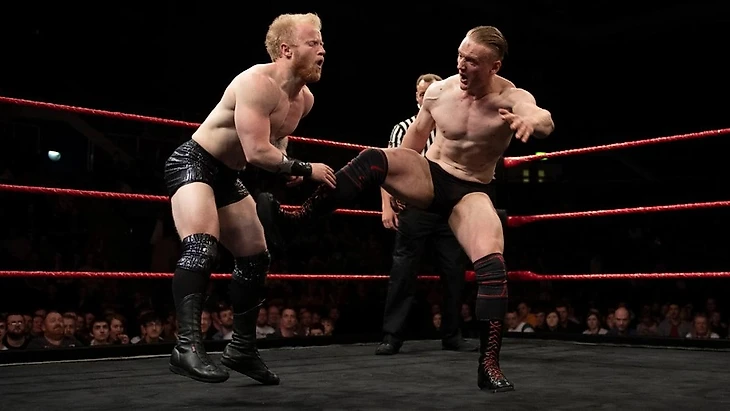 Время больших парней. Вольфганга поддерживали очень сильно, ведь записи проходили в его родной Шотландии, а матч начался с пары разбежек, после чего Мастифф заслэмил визави на канвас, но только до 2. Вольфганг же не позволил оппоненту полностью завладеть инициативой, проведя на радость толпы шоулдер блок с третьего каната, после чего заключил Дэйва в фулл нельсон, и достаточно долго не отпускал захват, пресекая попытки соперника вернуться в бой. Мастифф же все-таки умудрился перекинуть соперника через себя, тут же добавив сентон, но шотландец сразу принялся забивать его в углу. Экс хэндл с третьего каната от Вольфганга, слэм, он забрался за третий канат, но от Swanton Bomb Дэйв ушел, тут же проведя раннинг кроссбади. Немецкий суплекс в угол, кэннонболл, и «Бомбер» достаточно буднично победил, расстроив местную публику. У Мастиффа должны были взять интервью, но в ринг рванули братья Коффи. Дэйв дал им отпор, но тут уже в себя пришел Вольфганг, и втроем Gallus забили бедного здоровяка, а под конец Вольфганг провел ему Swanton Bomb, пока Джо и Марк держали «Бомбера», чтоб не рыпался. Публика довольна, чанты «We are Gallus!», и на этом шоу вышло из эфира.