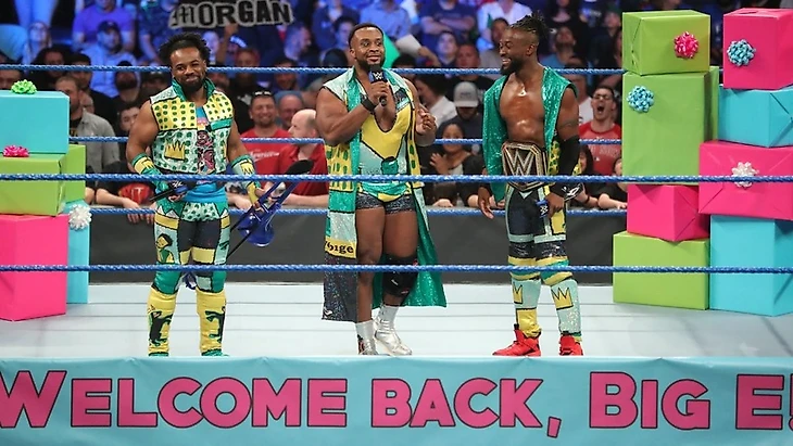 Первыми на рампу сегодня вышли представители Нового Дня – Кофи Кингстон и Ксавье Вудс (нам также анонсировали матч Зейна и Кингстона). Чемпион объявил, что сегодня особая ночь, ведь сегодня вернётся их лучший друг. Тем временем Вудс вывел кого-то под занавесом и под барабанную дробь нам представили… не Биг И. Под занавесом оказался какой-то мужчина в одежде И. Тут же позитивные ребята прогнали его, заставив забрать то, чем он был накрыт. И уже после нам представили настоящего Биг И, который был тепло встречен публикой. Вся троица направилась к рингу, а по дороге нам показали повторы с Money in the Bank, где Кингстон защитил свой титул от Оуэнса. В самом же четырёхугольнике Лэнгстон сперва обнюхал (в прямом смысле) своих друзей и воскликнул, что скучал по всем. Вместе с Вудсом они пошутили о развлечениях Биг И в твиттере и его приставаниях к матери Бекки Линч, но в этот момент чемпион обратил на себя внимание, попросив друзей быть серьёзнее. Они вспомнили о том, что Леснар выиграл контракт Money in the Bank, а Кофи покинул шоу в качестве нашего чемпиона WWE в тяжёлом весе. Кингстон всё же отмечает, что они собрались здесь ради Биг И, но тут же на рампу выходят «лучшие друзья» - Кевин Оуэнс и Сэми Зейн. Сэми явно возмущён тем, что они празднуют возвращение своего друга после 6-недельного отсутствия, тогда как сам канадец не получил ничего после 9-месячного. Новый День также предлагают Сэми то же, что и Оуэнс получил на Money in the Bank – ничего. Кевин отказывается комментировать и просто уходит, тогда как его лучший друг продолжает возмущаться происходящим. Прайзфайтер не смог выиграть титул, по мнению Сэма, лишь потому, что беспокоился о друге, который лишился шанса выиграть заветный кейс. Он продолжает оскорблять фанатов, которые создали такую токсичную среду, называет данный праздник отвратительным, а когда Вудс начинает перебивать его тромбоном, заявляет, что победит сегодня Кингстона на глазах его друзей и фанатов. В этот момент Кофи принимает серьёзный вид, прося своего сегодняшнего оппонента не быть обманутым улыбками и блинами, ведь он собирается не только покинуть ринг на своих двоих, вопреки угрозам канадца, но и пройти через самого Зейна.