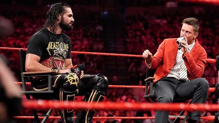 А нас ждал особый выпуск Miz TV во главе с мистером A-Leister Мизом, который напомнил об мистере MITB и его задаче на сегодня и пригласил главного чемпиона бренда Сета Роллинса на своё шоу. Вместе поприветствовав публику Остина (штат Техас), он принялись обсуждать события, связанные вокруг Сета и его титула - его матч на Super ShowDown против Бэрона Корбина и возможно успешный кэш-ин сегодня от Брока Леснара. Миз высказал массу опасений за судьбу Роллинса из-за Леснара, но Архитектор дал понять, что он намерен прежде всего защититься от голодного до побед Бэрона Корбина и он сфокусирован именно на этом. И тут - нам показали прибытие Пола Хеймана и Брока Леснара на арену (с обычным чемоданом, эх очень жаль), которые было уже были готовы сразу реализовать кэш-ин, но в итоге ушли в другую зону арены, а выпуск Miz TV был окончен.