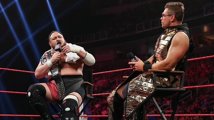 Поприветствовав зрителей на шоу, Миз представил нам своего гостя — WWEшную версию Годзиллы и нашего нового чемпиона Соединенных Штатов Самоа Джо. Тот появился и перед тем, как Миз сумел начать беседу, Самоа поправил ведущего: он не новый чемпион Соединенных Штатов, Рей украл этот титул у Джо, и сейчас он просто вернулся туда, где и должен быть. После хайлайтов того, как неделю назад самоанец уничтожил Мистерио, Миз заметил, что Рей тогда поступил как джентльмен и настоящий атлет, оставив титул, который не мог защищать, за что Самоа задушил его. Джо был немногословен: «Да, и че?». Затем «A-Lister» стал отчитывать «самоанскую машину» за то, что тот впутал в это противостояние семью Рея, а именно Доминика, чем пересек линию, которую нельзя пересекать. Джо ответил, что эти самые линии существуют для Миза и ему подобных, а для действующего чемпиона Соединенных Штатов их не существует. Он пришел на это шоу поговорить о потенциальных претендентах на свой титул, но возможно, ему лучше поговорить о семье Майка… И тут появился Брон. Строумэн в классической своей манере, предложил себя в качестве претендента на титул, но тут же к рингу двинулся Бобби Лэшли. «Всемогущий» заявил, что после поражение на SSD, его дела с Броном не закончены (What?), а также порекомендовал себя в претенденты Джо. Следующим появился Рикошет, которого утомили здоровяки, все время обсуждающие, кто сильнее и больше, в то время, как «один единственный» не является им конкурентом в этих параметрах, однако он одержал 2 победы над Сезаро и захотел использовать этот momentum для того, чтобы выиграть свой первый титул в WWE. И в этот момент заиграла музыкальная тема Сезаро, который, вроде бы, собрался говорить, а на деле лишь атаковал Рикошета. В ринге в этот момент плохие парни напали на хороших, но в итоге Миз, Брон и Рикошет зачистили ринг от недругов.