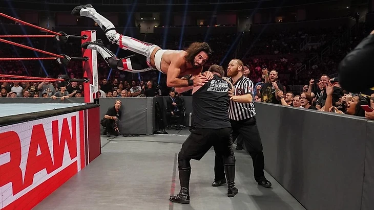 Перед началом боя Сэми забрался в ринг и проверил обоих исполнителей на предмет наличия запрещенных предметов, спрятанных где-то. Естественно, Сета он осматривал тщательней. В итоге матч начался с классического лок-апа, Кев добрался до канатов, но Роллинс отпустил его не сразу, что не сразу понравилось Зейну. Втой лок-ап, и Оуэнс стал обрабатывать руку чепиона, но Сет его свернул, затем второй раз, но рефери отвлекся на Зейна, из-за чего реф не отсчитал верное удержание. Сет вступил в перепалку с Сэми, что позволило Кевину атаковать, но эта атака не принесла успеха. И снова Сэми вмешался в матч, ибо Роллинс, по его мнению, слишком долго забивал Оэунса в углу. Еще немного они с Зейном поспорили, и Сет провел дропкик за пределы ринга Оуэнсу. Зейн тут же подбежал к другу, чтоб проверить его состояние, Сету сие не понравилось, он попытался атаковать оппонента, но был впечатан в баррикаду и получил DDT на рингсайд. С этих пор канадец завладел полным контролем, уничтожая «Архитектора». В какой-то момент Роллинс смог поймать оппонента слингблэйдом, но в ответ «съел» гатбастер. Swanton Bomb Оуэнса был встречен коленями, и он отправился за пределы ринга, где чемпион Вселенной попытался его полететь суисайд дайвом, однако получил панч в ответ. Поп-ап пауэрбомба в ринге не прошла, и рестлеры обменялись суперкиками и энзигури. Роллинс забрался на третий канат для фрогсплэша, но Зейн опять активно принялся проверять состояние товарища, что вновь не понравилось Сету, и снова он стал ругаться с Зейном, «КейОу» чуть не свернул чемпиона до 3, но Роллинс отправил его за пределы ринга и провел суисайд дайв, которым задел частично Сэми. Стомп в ринге, но отчитать основному судье не позволил Зейн, который требовал дисквалификации для Роллинса. Второй реф с этим не согласился, в итоге Сэми забрался в ринг, и опять принялся спорить с чемпионом. Тому все это надоело, он схватил рингсайд-судью за шиворот… и тот тут же дал отмашку о дисквалификации «Архитектора». За это Роллинс атаковал Сэми, но тут в ринг прилетел Корбин, который принялся забивать оппонента по грядущему шоу. «Волчара» даже затащил в ринг стул, попытался атаковать, но получил кик в корпус и свалил. Зейну же досталось стулом по спине, фанаты попросили еще, и Сет нанес еще один удар, еще один и еще очень много ударов, а закончилось все это Стомпом. На торжествующем Роллинсе шоу вышло из эфира.