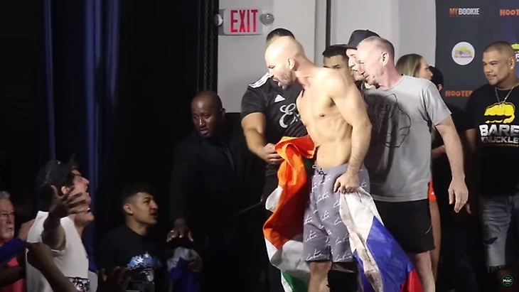 Не знаем как пройдёт поединок Артём Лобов – Пол Малиньяджи, но вот подготовка к нему очень жаркая. На взвешивание бойцы не подрались, зато Артём ввязался в потасовку с командой боксёра. Хорошо, что всех успели растянуть.