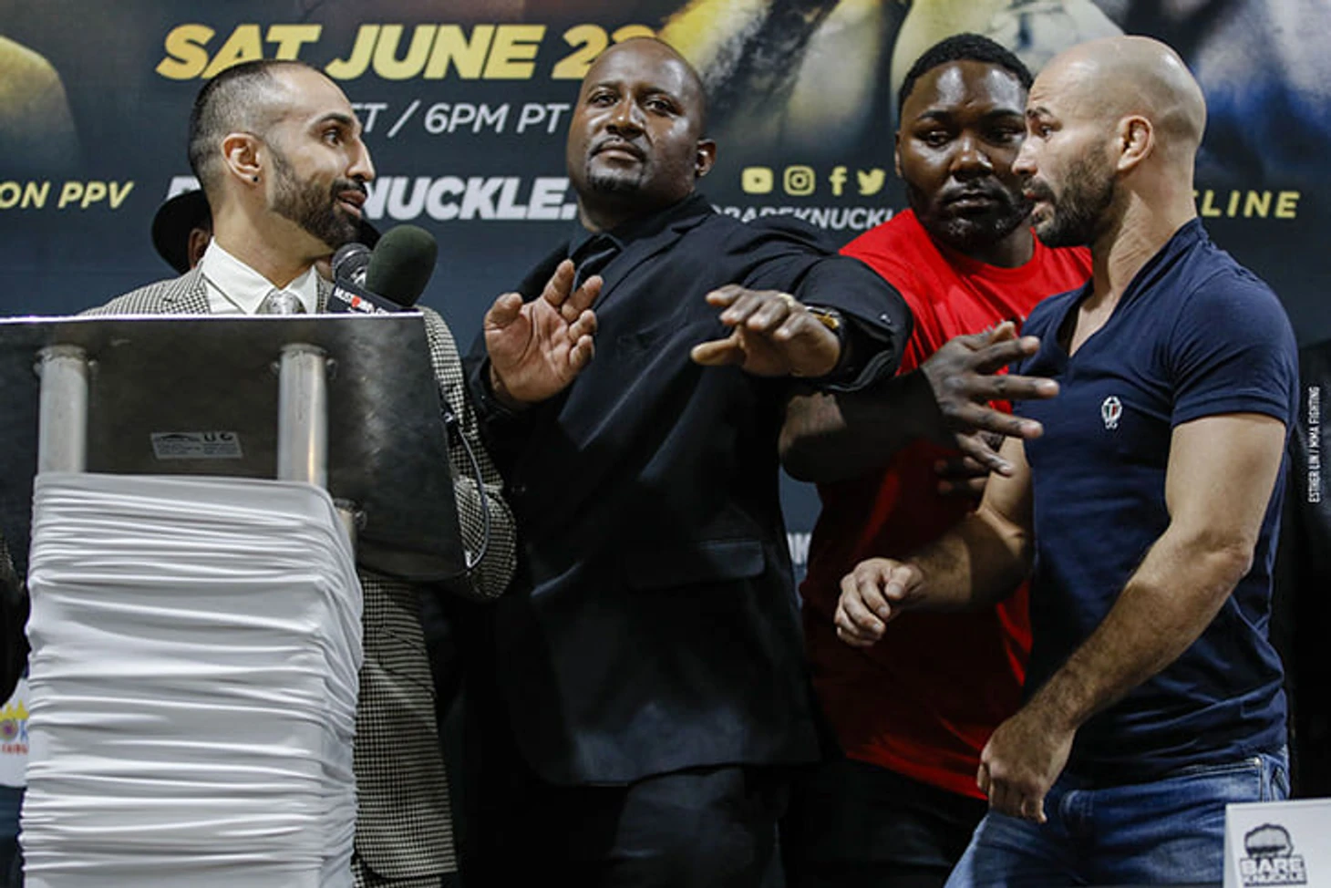 Малиньяджи и Лобов наверняка встречались во время подготовки Конора к бою против Флойда, но там они были на одной стороне. Первая встреча как врагов произошла в преддверии дебюта Артема в Bare Knuckle FC в начале апреля.