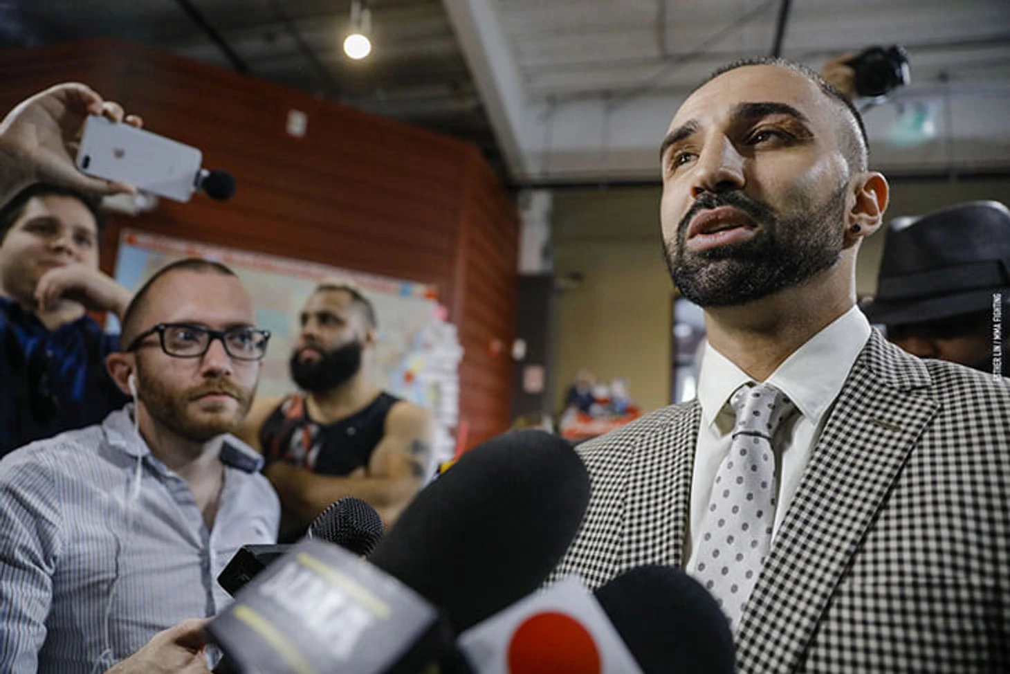 На медиа-дне спортсмены столкнулись и после общения на повышенных тонах Малиньяджи отвесил Лобовую пощечину. Потасовку быстро разняли.