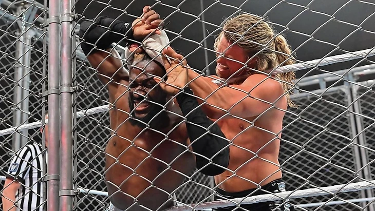 Это был матч, которому много чего не хватило. Динамики было мало, в победу Дольфа как-то не верилось, поединок казался каким-то слишком уж затянутым. Плюс, как отметил один из наших подписчиков, концовка, в которой Кофи с травмированной ногой вылетает из клетки в прыжке гепарда, выглядит как-то нелогично. То есть, для чего была рассказана эта история с ногой, которую Дольф мучил в болевых. В общем, это был очередной большой матч, от которого мы были в праве ждать красоты и даже ждали, но получили что-то очень среднее.