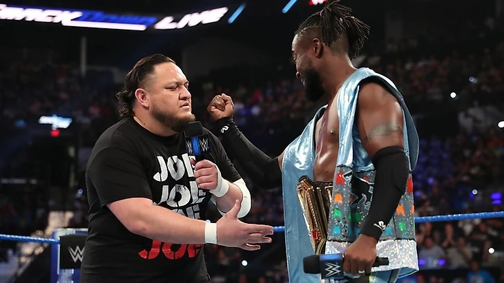 Самоа Джо и Кофи Кингстон лицом к лицу.