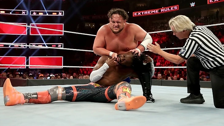 Чемпион сразу бросился дропкиком на претендента, однако Джо выдержал напор и контратаковал клоузлайном, а после пошёл на Кофи своими jab-ами, чередуя их в итоге с остальными ударами. Кингстон сделал попытку сопротивления - и нарвался на подсечку Джо, что закрепило его контроль в матче. Тем не менее Кофи продолжил сопротивляться напору Самоанской Машины болевых, которая кстати и пустила то самое, за что и прославился наш герой. Однако чемпион никак не унимался и срывал любые попытки, правда манёвр претендента в углу ринга с pele-киком прошёл, но удержание только до 2. Чемпион WWE сумел также загнать в угол своего недруга и угостить его своими кулаками и приготовился к атаке с другого угла - Джо это пропустил, но не ушёл от leg-дропкика, который выбил его с ринга.
