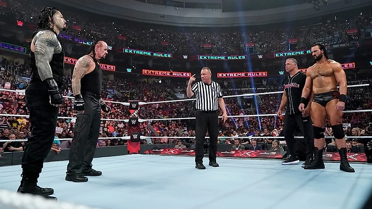 3) Роман Рейнс и Гробовщик против Шейна МакМэна и Дрю МакИнтайра - командный поединок по правилам No Holds Barred Match.