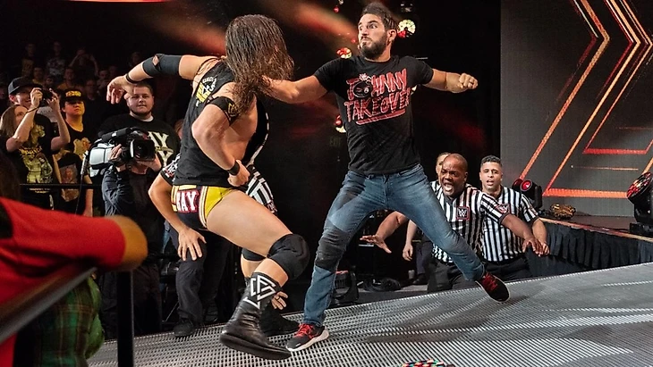 Тут наше внимание переходит на то самое видео, снятое после NXT TakeOver: New York, когда Джонни Гаргано вернулся в школу рестлинга в родном Кливленде новым Чемпионом и дал подержать пояс безобидному толстячку по имени Твэн Такер. Собственно говоря, Твэн и будет сегодняшним соперником Адамаски. Твэн вышел на рампу с микрофоном в руках, однако Коул еще не закончил говорить. Он заверил Такера, что сегодня он пришел один, и на ринге не будет никого, кроме них двоих. Тут Твэн возразил, что ему жаль, ибо он пришел не один. И зал взорвался так, как не взрывался уже давно. Джонни Рестлинг ворвался в четырехугольник и суперкиками выгнал Плейбоя из Панама-Сити в зрительские ряды. Коул смог дать отпор и попытался ускользнуть, но неумолимый Гаргано нагнал в верхнем секторе. Драка продолжилась, Адам сопротивлялся как мог. Сильный удар о баррикаду успокоил его, а вот Джонни на этом не успокаивался, так что рефери пришлось оттаскивать его. Но и после этого он буквально влетел на своего врага и продолжил гнать его на ринг, где Адам, несмотря на упорную борьбу, все же угодил в Garga-NO Escape и постучал, как некогда стучал на рампе окрававленный Томмасо Чампа. Уходя, Джонни Рестлинг показал на пальцах число "3", тем самым недвусмысленно намекнув, чего он хочет...