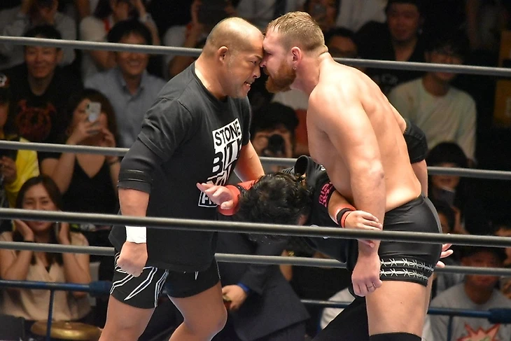 Пару слов о командниках. Во-первых, Арчер и Сузуки в своем матче смотрелись мощно, победив Танахаши и Хонму. Причем удержан был именно Хонма Лэнсом с помощью Claw. После боя Представители Suzuki-gun избили и Хироши, и Томоаки дополнительно, и молодых львов, а Арчер пообещал убить Хирому в их матче завтра, потому что «Everybody Dies». Также в финальном командном бою вечера сошлись Окада с ЙОШИ-ХАШИ и Уилл Оспрей с Тоа Энаре. ХАШИ удержал Тоа для победы, а Казучика и Уилл показали отличное превью к своему поединку завтра. У нас назревает претендент на 5 звёзд и более. Также САНАДА и Ибуши, которые столкнутся завтра поиграли в гляделки после своего командника, а ИВИЛ с КЕНТОЙ, участвовавшие в том же команднике, чуть не подрались.