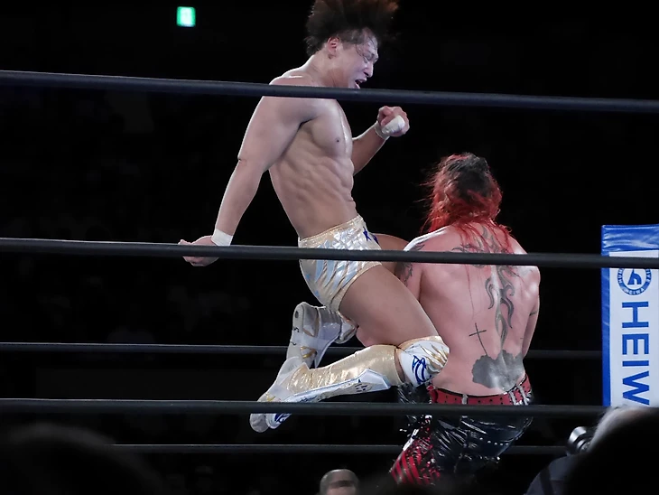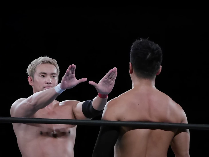Из командников, в первую очередь, удивил первый, в котором сошлись Нарита, Тсуджи и Кобб с Сузуки, Канемару и Таичи. Удивил он тем, что после матча Таичи пожал руку Джеффу…. и ушел. То есть, никакой подляны от «императора», чего мы могли ожидать, не последовало. Также интересной получилась встреча тандемов Умино и Моксли с Найто и Такаги. Еще до матча Тетсуя начал докапываться до Джона, что продолжилось и во время поединка, и после. «Tranquilo» Найто, зная, что «Мокс» не самый ментально стабильный исполнитель, сделал максимум, чтобы вывести того из себя. Эта история продолжится и в их матче завтра, и меня такой стори-теллинг очень подкупает.