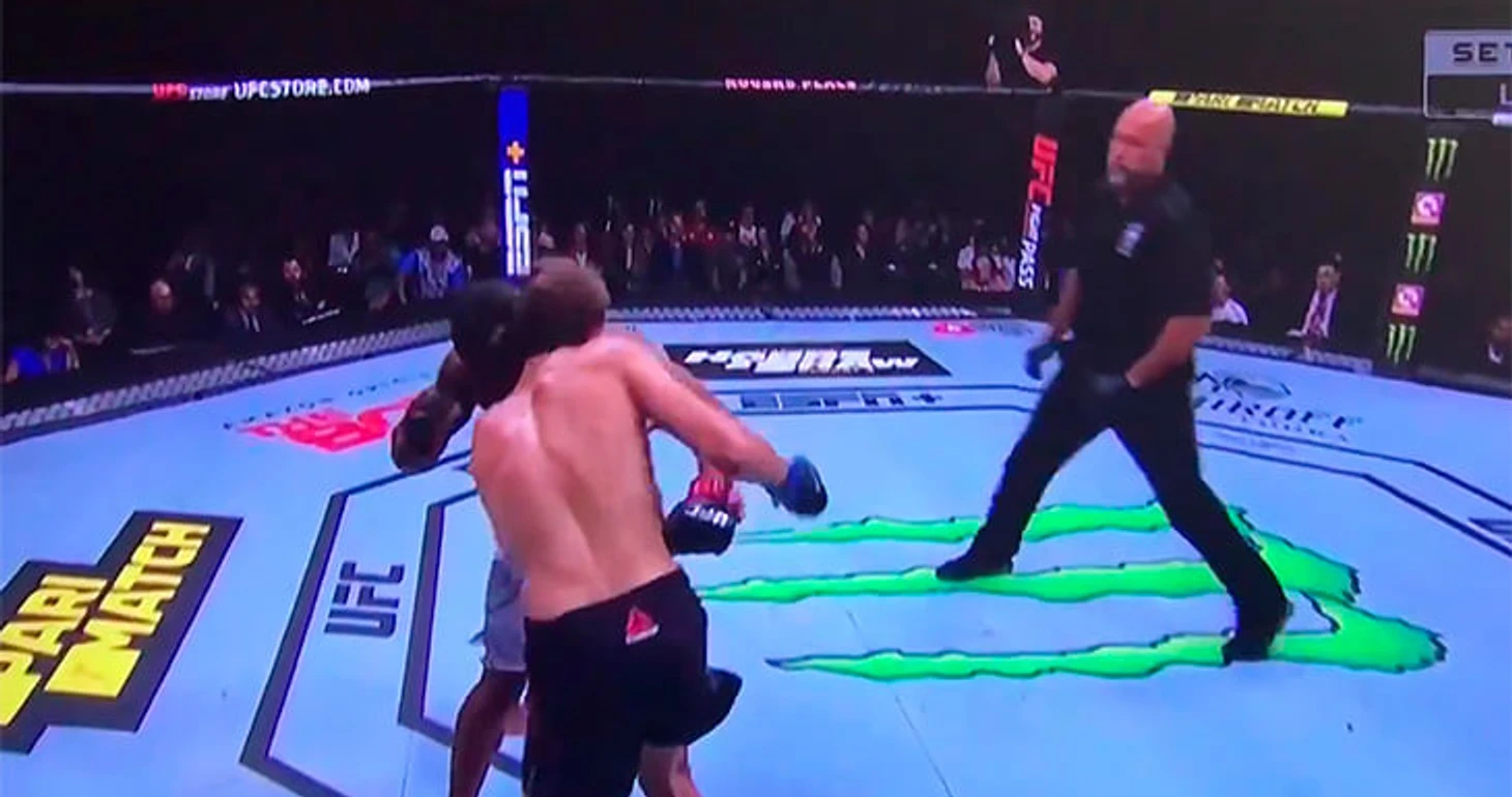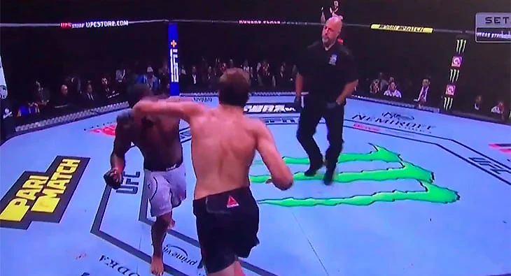 На UFC 240 чуть не случился двойной нокаут. Бойцы жестко столкнулись головами