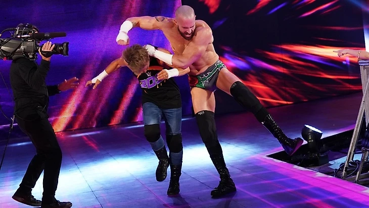 И так как это был именно матч без ограничений - Канеллис сходу атаковал Дрейка во время его выхода на ринг. Майк принялся избивать главу бренда не только руками - рендер рампы также пошёл в ход. Канеллис не стеснялся психологически давить на Маверика, не оставляя ему шансов на победу. Зрители обрушили на Майка шквал BOO без остановки, а Канеллис отвечал на это наездами, даже комментаторам досталось, а рефери были готовы и вовсе увести Дрейка, тем самым остановив матч. Маверик естественно отказывался подчиняться и был готов - оказалось, что матч и вовсе не был начат официально и рефери всё-таки дал отмашку для гонга.