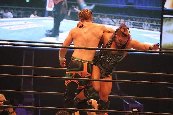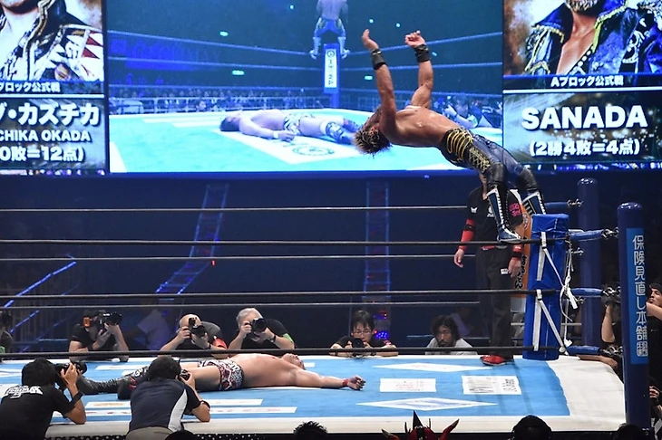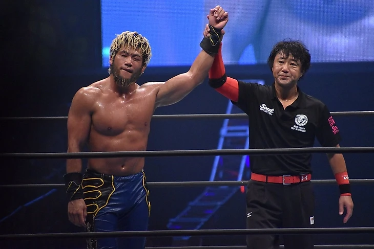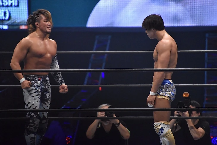 После того, как рестлеры поиграли с публикой, дабы выяснить, кого она любит больше, они стали упражняться в классическом чейн-рестлинге и захватах, затем САНАДА стал наносить удары в корпус, но чемпион ответил шоулдер тэклрм и Хип тоссом. После гляделок, рестлеры не торопясь сцепились в очередном лок-апе, после чего САНАДА поймал оппонента дропкиком. Несколько ударов локтем, и САНАДА попытался заключить соперника в Paradise Lock, но Окада отбился, чтобы «съесть» бэк элбоу до 2. Представитель LIdJ попробовал углубиться в захваты, но получил локоть, затем ещё один в углу и DDT до 2. Слэм и заход на элбоу дроп с третьего каната, но неубачно, в отличие от дропкика на углу в исполнении чемпиона IWGP в тяжёлом весе. На рингсайд прошел запуск в ограждение, бут и DDT с баррикады, а в ринге прошел ещё и слайдинг дропкик. Казучика попробовал развить инициативу апперкотами, но САНАДА ответил дропкиком в колено, а затем поймал оппонента ещё одним, за которым прошло кроссбади за пределы четырехугольника. В ринге удачно прошел Paradise Lock и дропкик с последующим удержанием до 2, и Окада подловил соперника на флэпджек. Пара киков, и САНАДА парировал дропкик, проведя свой собственный и белли-ту-бэк суплекс до 2, а мы узнали, что от матча прошло 15 минут, то есть, половина. Попытку миссл дропкика Казучика перевел в air raid neckbreaker, добавил слэм и элбоу дроп с угла. Заход на Rainmaker, но САНАДА перевел это дело в Skull End, который Окада, в свою очередь, реверсировал в Томбстоун. Rainmaker САНАДА перевел в anarchist suplex, и оба рестлера упали без сил. Прийдя в себя, они стали потихоньку вставать, обмениваясь ударами, и это продолжалось до объявления, что матч перевалил за отметку в 20 минут, в итоге из размена победителем вышел САНАДА, но Окада совершил камбэк с помощью дропкиков. Rainmaker САНАДА сконтрил, а Томбстоун перевел в Skull End, шарахнув затем тайгер суплекс до 2. TKO от САНАДЫ, и снова 2. Мунсолт с третьего каната мима, но LIdJовец приземлился на ноги, поймав оппонента в очередной Skull End, на который Казучика ответил коротким Rainmaker, а затем шарахнул ещё один. Классический Rainmaker САНАДА парировал собственным лэриэтом. Очередной Skull End, в котором Окада очень долго мучился, а визави все не хотел его отпускать, но чемпион не сдавался. В итоге, осталось 3 минуты, САНАДА решил, что достаточно усыпил соперника, забрался на третий канат, и Казучика встретил мунсолт коленями. За полторы минуты до конца вся арена сходила с ума, поддерживая САНАДУ, а рестлеры пытались найти силы на финальный бросок. Окада провел дропкик, вышел на Rainmaker, однако САНАДА перевел его в поп-ап TKO. 20 секунд осталось. Мунсолт с третьего каната на спину Казучики, затем ещё один на лежащего на спине соперника, и это очень трудовая виктория САНАДЫ. После боя победитель вспомнил, что год назад он проиграл в Осаке (город, в котором приходило шоу), из-за чего невзлюбил этот город, но сегодня для него это невероятно крутое место, ведь он наконец, с седьмого раза победил своего врага.