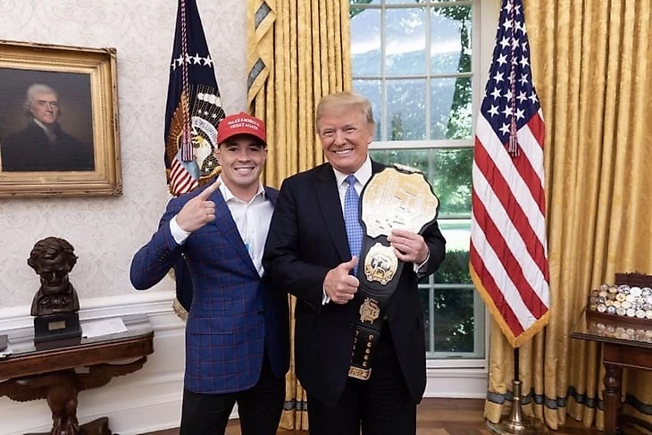 Зато он активно поддерживает Колби Ковингтона, о чем мы рассказывали. Когда американский боец стал временным чемпионом UFC, Трамп пригласил его в Белый дом, фотографировался с поясом, а Колби стоял в кепке Make America Great Again.