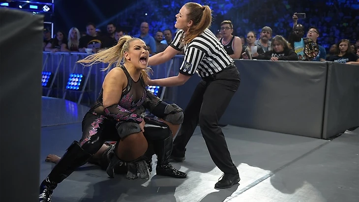 Во время выхода первой нам напомнили, что случилось во время командного матча на RAW, где она не отпускала Бекки Линч из болевого. Во время выхода же второй нам показали, как Бейли провела на ней Bayley-to-Belly на прошлой неделе.