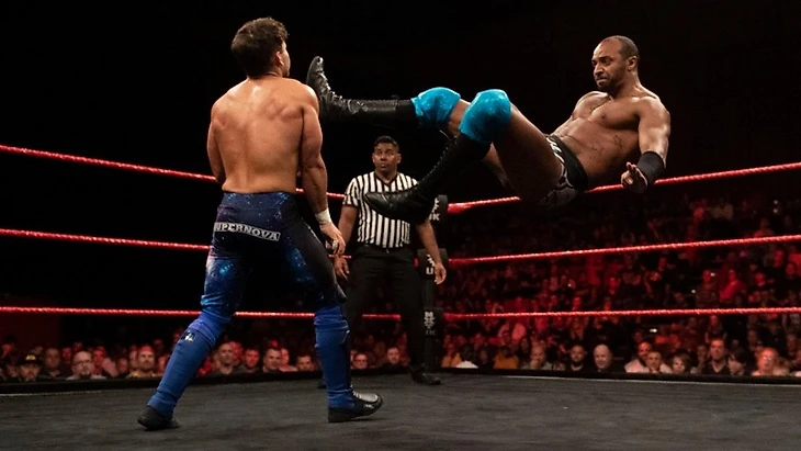После трибьюта Харли Рэйсу, нас ждал первый матч. Начался он с классического лок-апа и чейн-рестлинга. В нем, вроде бы, преимущество было на стороне Эштона, но Ноам отбился, исполнители набрали ход, и Смит провел дропкик до 2. Запуск в угол от Дара, Эштон отбился локтем, и шотландец стал симулировать травму глаза, после чего атаковал Смита, отправив его за пределы ринга. Вернувшись в четырехугольник, Дар стал развивать инициативу в борьбе, работая над рукой оппонента. Несколько безуспешных удержаний, и Смит вернулся в матч, но ненадолго, ибо оппонент поймал его в энкл лок. Эштон отбился и стал наносить удары правой, за которыми последовали кики, колено в углу и дропкик до 2. Ноам нашел чем ответить, проведя PK до 2. Nova Roller не прошел, и Смит свернул его до 2. Суперкик пришелся в цель, но лэг лэриэт мимо, и Nova Roller поставил точку в матче. После этого победитель Ноам Дар зачитал небольшое промо, похваставшись своим крупным контрактом с NXT UK, и пообещал быть на TakeOver: Cardiff.