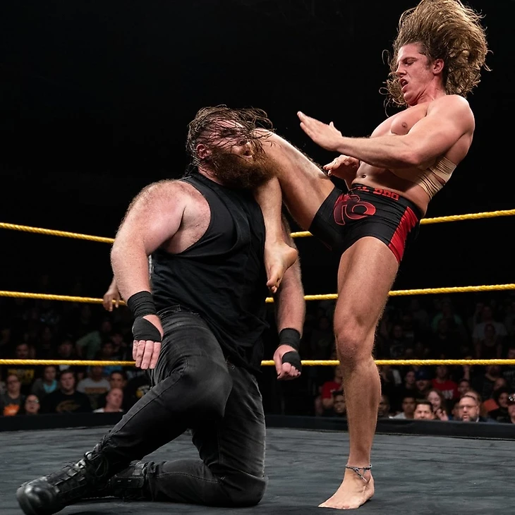 Как это всегда бывает на старте новых записей, комментаторы устроили нам бомбардировку громкими анонсами перед мэйн-ивентом: во-первых, Джордан Майлс все же получит матч за Чемпионство NXT через две недели, а во-вторых, Ригал, не взирая на детские оскорбления Фиша, прислушался к стонам эровцев и решил наградить их еще одним тайтл-шотом на Командное Чемпионство NXT, принадлежащее Street Profits, уже на следующей неделе. Вывески вполне занятные, а как оно выйдет на деле - узнаем непосредственно в дни шоу. Прямо сейчас нас ждет бойня обновленного Дэйна с вечно накуренным Риддлом. Киллиан заметно подкачался и обзавелся новым титантроном с новой музтемой. По всей видимости, у Зверя из Белфаста теперь будет гиммик жертвы конфликта в Северной Ирландии что в общем-то не так плохо - по крайней мере, это может объяснять, как он попал в ряды таких беспредельщиков, как Разумные. А вот темка, к сожалению, довольно безвкусная. Ну да ладно, не темка главное, главное то, что Мэттью откопал в глубине своей души частичку безжалостной агрессии и напал на обидчика со спины, отвесив ему несколько смачных ударов. Судья с трудом разнял драчунов и только после этого приказал бить в гонг.