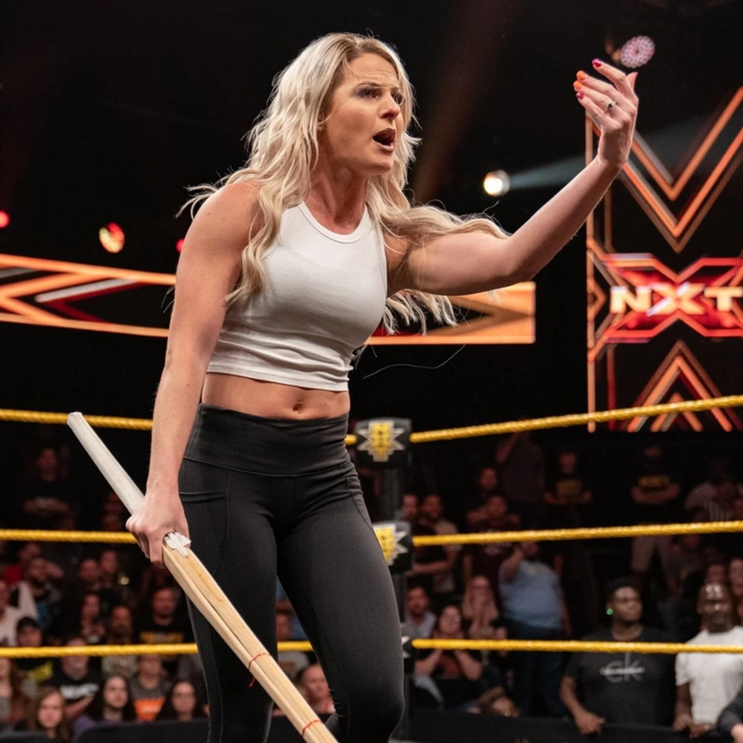 Помните, как на прошлой неделе Мия Йим отвергла предложение Шэйны Бэйзлер вступить в ряды Всадниц ММА, за что неплохо так огребла? Учитывая, что Йим и Бэйзлер в жизни являются близкими подругами, это выглядело достаточно иронично, но, как оказалось. у той истории есть продолжение: в тот же вечер Мия поймала Уильяма Ригала на улице и стала выпрашивать еще один матч и жаловаться на поведение троицы. На это ризанобл мэн резонно заметил, что кореянка уже получала свой шанс и не смогла воспользоваться им должным образом, и вообще, она напала на них, так что не ожидать ответной реакции было бы странно. В тот вечер Ночная Сова упорхнула из Full Sail несолонно хлебавши, а сегодня ее противница вновь почтила "желтый" бренд своим присутствием, заручившись поддержкой более мирных Джессамин и Марины. Однако стоило ей раскрыть рот, как внезапно ее прервал крик "THIS IS MT BRUTALITY!". Да, это то, о чем вы подумали - Рия Рипли почтила "родной" бренд своим присутствием, видимо, устав от неудач, преследующих ее в NXT UK с момента проигрыша женского чемпионства. Поднявшись на ринг, осси выхватила у Бэйзлер из рук микрофон и заявила, что знает наперед, что та хотела сказать: Шэйна победила всех, кто вставал на ее пути..."но ты еще не побеждала меня, сучка!". Не рискнув отвечать на непривычно резкое высказывание в свой адрес, Шэйна отступила, прихватив подруг с собой, пока Рия сверлила ее презрительным взглядом. Вот такой вот необычный вызов, вот такая вот необычная претендентка. К этому сегменту как нельзя лучше подходит поговорка "мал, да удал". Практика обмена рестлерами между NXT и NXT UK пока очень радует. Ждем, когда Рипли порадует нас своей победой.