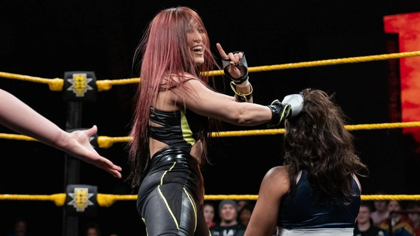 Интро-заставку предварял довольно зрелищный тизер сегодняшнего главного события, а именно - матча за Командное Чемпионство NXT между Street Profits и The Undisputed Era. Как вы помните, защита Пророков на NXT TakeOver: Toronto II была признана недействительной, поскольку они удержали нелегального участника матча, так что чемпионам придется доказывать свое превосходство над Кайлом О'Райли и Бобби Фишем во второй раз. И все же нам придется с этим повременить, ибо шоу открывают вовсе не эти ребята, а психоделичный выход жестокой Ио Шираи. Не желая терять лишнего времени на пустые разговоры, она предпочитает доказывать свое мастерство делом, и сегодня объектом для демонстрации этого мастерства станет Кэми Филдс, более известная, как подающая надежды инди-рестлерша Холидэд.