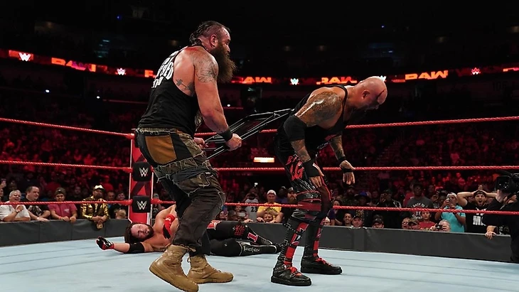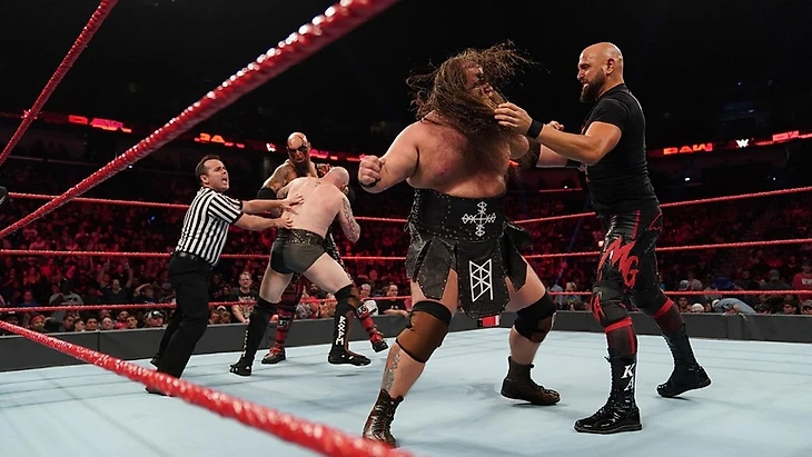Следующим на очереди нас ожидал командный хоровод за право противостоять на следующем PPV Брону Строумэну и Сету Роллинсу. Первыми на ринг, наконец, в стоящий матч, ворвались Viking Riders. Их оппонентами стала B-Team, которые попытались оказать сопротивление выходцам желтого бренда. Вышло все прозаически, сиюминутное уничтожение и победа за дебютантами. Следующими вышли члены О’Клуба, бывшие чемпионы готовы были рвать и метать, уж больно свежи в памяти события прошлой недели. В итоге это им и помешало, коллективы, не желая играть по правилам, захотели устроить рубилово за рингом, не заметив отсчет, были дисквалифицированы.