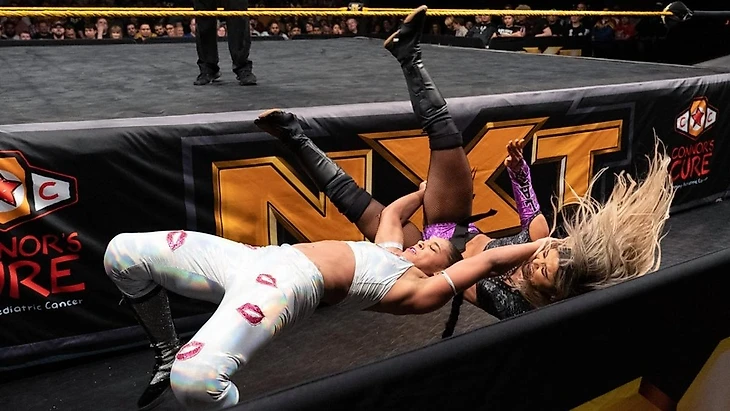 Стандартный лок-ап в начале, Бьянка загнала бразильянку в угол, потом еще раз. Тайнара шла напролом и смогла выйти на краткое удержание. Попытка армбара оказалась менее успешной, однако блондинка не дала сбросить себя сразу и опять вышла на удержание. Плечевой блок отправил Конти на канвас. Белэйр решил захватить вожжи покрепче и несколько акробатических трюков спустя повалила Тайнару при помощи дропкика. Конти решила ответить monkey flip'ом, но EST of NXT сохранила равновесие и приземлилась на ноги, что дало ей возможность тут же вернуться в строй. Тайнара улучила момент и оглушила соперницу ударом о тернбакл. Кик и попытка удержания от Конти - само собой, неудачная. Тайнара разошлась не ну шутку, она применяла панчи, кики, броски, но Бьянка не поддавалась. Удары коленями от разъяренной дзюдоистки и последовавший после армбар с применением канатов вынудили Белэйр выкатиться в рингсайд. Crossbody Конти с апрона, но Белэйр поймала соперницу в воздухе и отправила ее восвояси при помощи fallaway slam'а. По возвращении на ринг темнокожая спортсменка не оставила сопернице шансов и буквально похоронила ее под серией атак, завершив матч своим KOD.