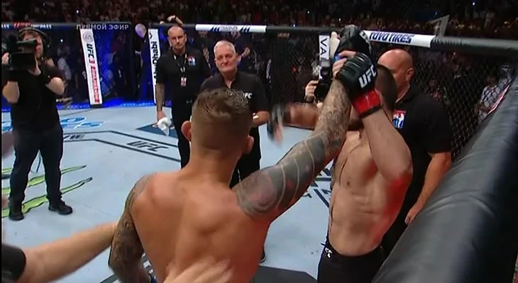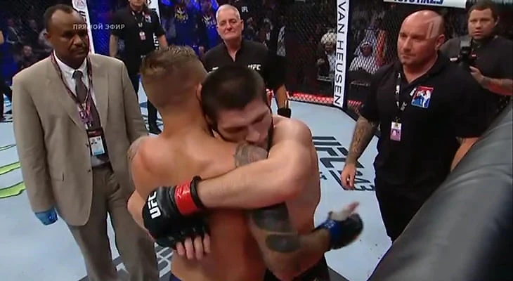 В этот раз у него не было конфликта с соперником. Наоборот, с Порье все было максимально уважительно. Сразу после празднования с командой российский боец побежал назад в октагон, где обнял Дастина и поднял его руку – все в знак уважения.