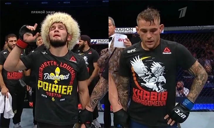 После этого бойцы обменялись футболками. Порье ходил в майке Team Khabib, а чемпион давал интервью в майке Порье.