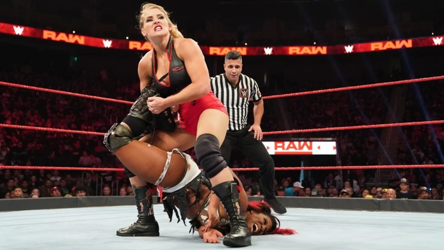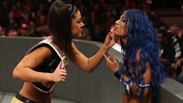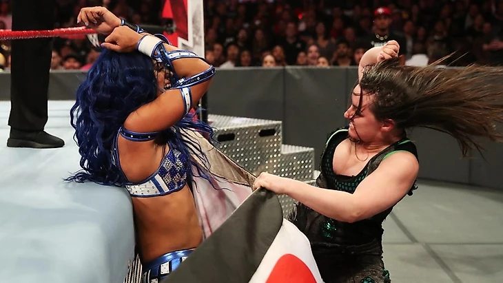 Бэйли и Алекса Блисс присутствовали на рингсайде. На старте матча Саша принялась забивать оппонентку в углу, отвесила ей пощечину, но и Никки в долгу не осталась, проведя несколько страйков, манки флип и дропкик. Бэнкс спаслась от соперницы на рингсайде, и какое-то время не спешила возвращаться в ринг. Вернувшись, она все-таки попыталась завладеть преимуществом, но нарвалась на сворачивание и армдрэг. Выбравшись из болевого, она получила еще один армдрэг и сворачивание, затем еще на одно, и вновь захват руки. В следующем эпизоде Никки провела кроссбади, а на рингсайде поймала Сашу в слипер, но та жестко сбросила ее с себя, и шоу ушло на рекламу. Когда пауза закончилась, мы увидели, как Кросс в очередной раз поймала соперницу в сворачивание, отбилась от двойных коленей в углу, но получила колено и slingshot double knees. Из очередного очень необычного болевого Кросс выбралась, провела серию атак, сплэш в углу и бульдог до 2. «Босс» атаковала ногу командной чемпионки с помощью канатов, провела метеору в углу, и вновь до 2. Попыталась Саша развить преимущество, атакуя ногу Никки, но та направила ее в угол ринга, потом добавила дропкик из ринга на рингсайде и кроссбади с апрона. По пути в четырехугольник, Бэнкс достался некбрейкер на канаты, и еще один в центре ринга, но снова до 2. Коронный некбрейкер не прошел, и Саша провела неплохой удар коленом до 2. Дропкик в корпус, и Кросс укатилась за пределы ринга, но бейсбол слайд не прошел, и Никки поймала оппонентку в фартук, нанеся несколько ударов. Торнадо DDT у нее не прошел, как и Banks Statement, и Никки шарахнула коронный swinging neckbreaker. Судью отвлекла Бэйли, так что удержание не прошло, и на чемпионку SmackDown налетела Блисс, отправив ее в зону тайм-кипера. Кросс же забралась на угол ринга, провела хай кросс, но Бэнкс перевела это дело в Banks Statement, из-за которого «Разумная» была вынуждена сдаться. После матча в Banks Statement попала еще и Блисс.