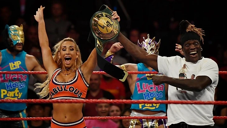 Я, конечно, понимаю, что искать логику в таких сегментах нельзя вообще. Но, постойте… Кармелла отобрала титул у Труфа. Девушка у мужчины. Почему теперь за Кармеллой бегают девушки, а остальные парни расстроились и решили не бегать за ними? То есть, женщина может отобрать у мужчины титул, а наоборот у них это не работает? Или как? Или Тед ДиБиаси создал прецедент, из-за которого теперь мужчина может только выкупить у женщины этот титул? Если кто-то из вас понимает, что вообще происходит, объясните мне в комментариях.