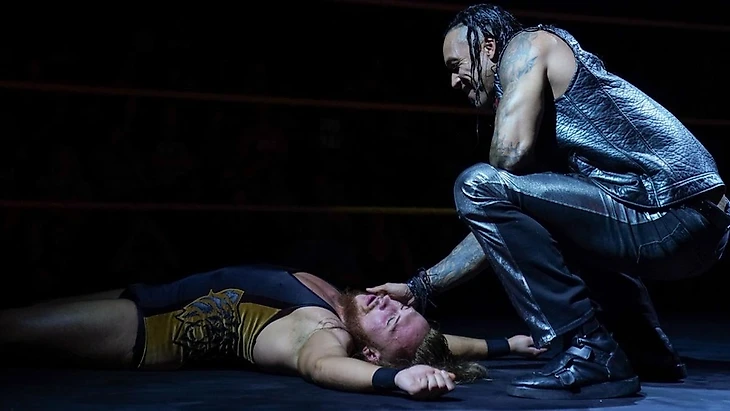 Достаточно короткий, но при этом невероятно интенсивный и жесткий махач - глупо было ожидать чего-то другого от таких парней, как Данн и Берч. Сочетание ударной техники Дэнни и смешанного стиля Питера всегда дает впечатляющий результат, и данный матч не исключение. Осовная претензия все та же: мало смысла. Конечно, можно пофантазировать на тему, что лысый и нескучный захотел отыграться за свое поражение в стенах NXT UK, но зачем что-то домысливать, когда единственная причина существования этого поединка - стремление забить чем-то эфир? Но это были только цветочки...