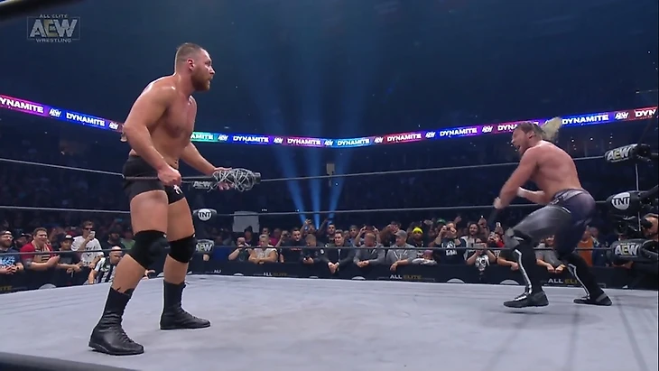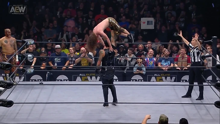 Это был прекрасный матч. Безумные скорости, плотное действие, и мы видим развитие фьюда Омеги и Моксли и явный задел на фьюд Моксли и ПАКа. И еще: я очень не люблю сравнивать с WWE, но сейчас не могу этого избежать. В компании Винса рестлерам четко говорят, что шоу ушло на рекламу, и они спокойно переходят в рестхолды, тем самым руша «флоу» всего матча для зрителей на арене. По этому матчу было видно, что рестлерам AEW глубоко положить на рекламные паузы, потому что действие не прекращается ни на секунду и, если бы не фразы Джима Росса: «Наше шоу продолжится после рекламы», я бы в жизни не догадался, что во время этого матча было целых два перерыва на рекламу.
