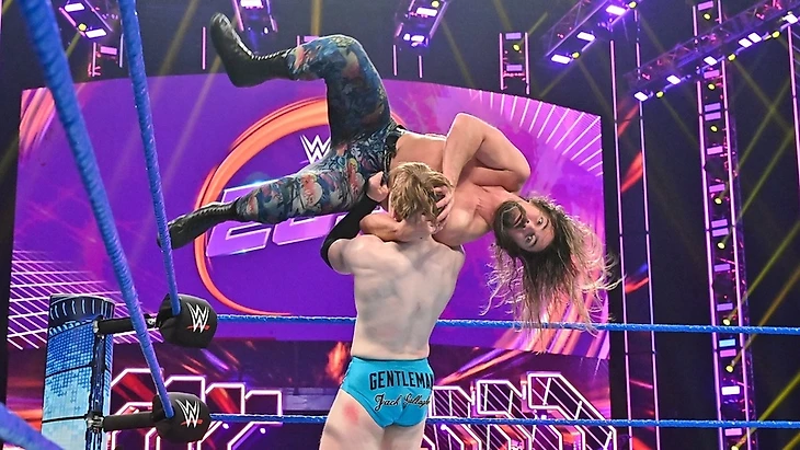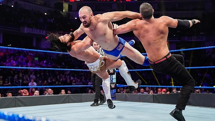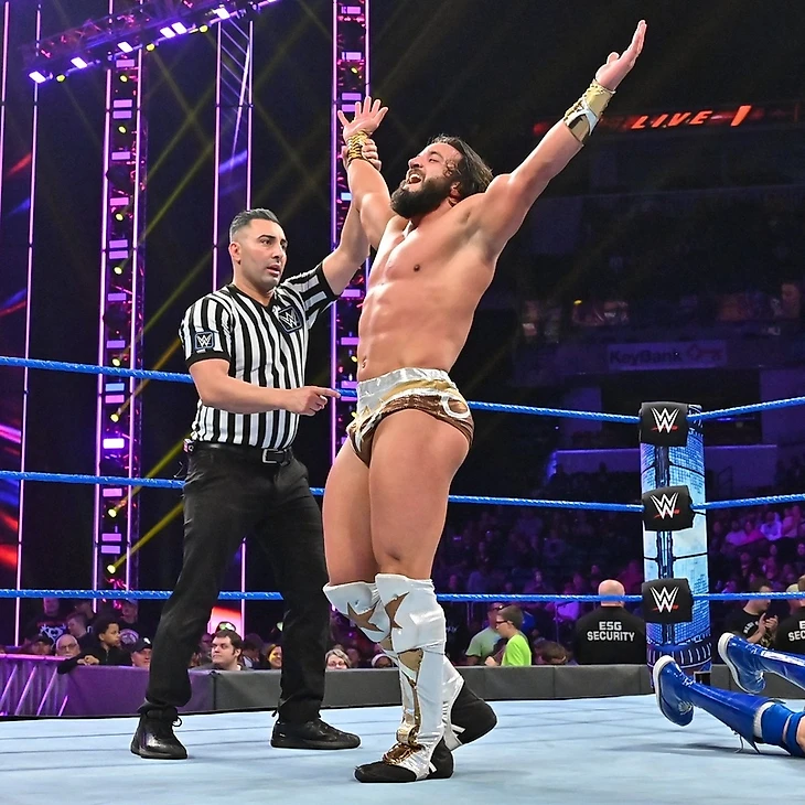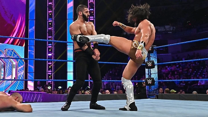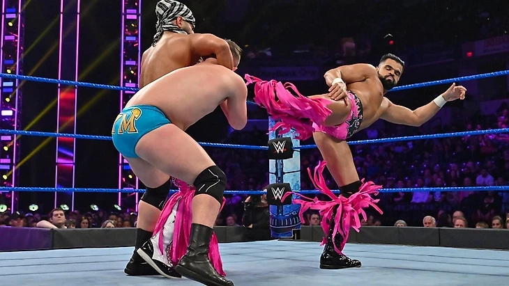 После двух реклам от проектов WWE и колоритного представления Анхело Гарзы - звезды мексиканского рестлинга, кузена задрафтованного на красный бренд Умберто Каррийо, рестлера NХТ и потенциально топ-звёзды WWE (если в лоукард не спустят на всех парусах идиотизма букинга WWE), нас сразу же отправили ко второму поединку вечера...
