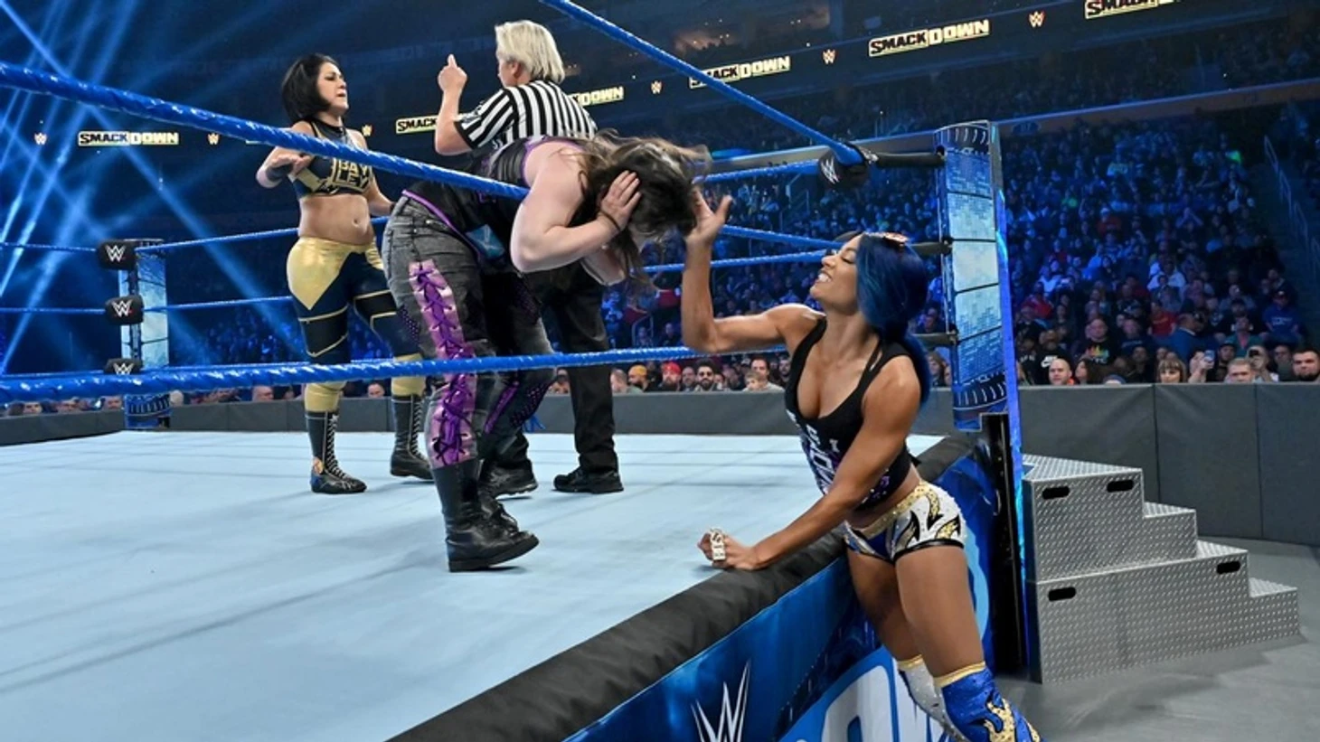Неожиданно после гонга появляется Шэйна Бэзлер, которая атакует всех трех представителей женского дивизиона SmackDown.