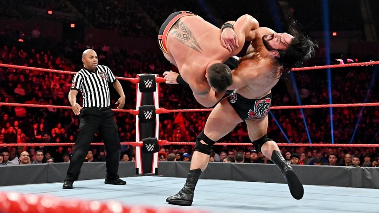 Дрю тут же провёл хэдбатт и дезориентировал болгарина - он прокатил его по рингу, но в один момент Русев отбился клоузлайном и сам начал проводить атаки на Макинтайра, проведя его от одного угла к другому. Дрю всё же сумел также начать отвечать своими ударами, но всё в принципе ограничивалось именно ими - так он просёк попытку Русев перейти в наступление, хотя и болгарин в итоге провёл fallaway-слэм Дрю и выбил его с ринга. После рекламы Макинтайр решил брать здоровяка измором (показав при этом отрезок во время рекламы - там Дрю провёл сильный overhead double-underhook суплекс, но удержание только до 2) - Русев сделал попытку отбиться и нарвался на спайнбастер, но удержание снова было до 2.
